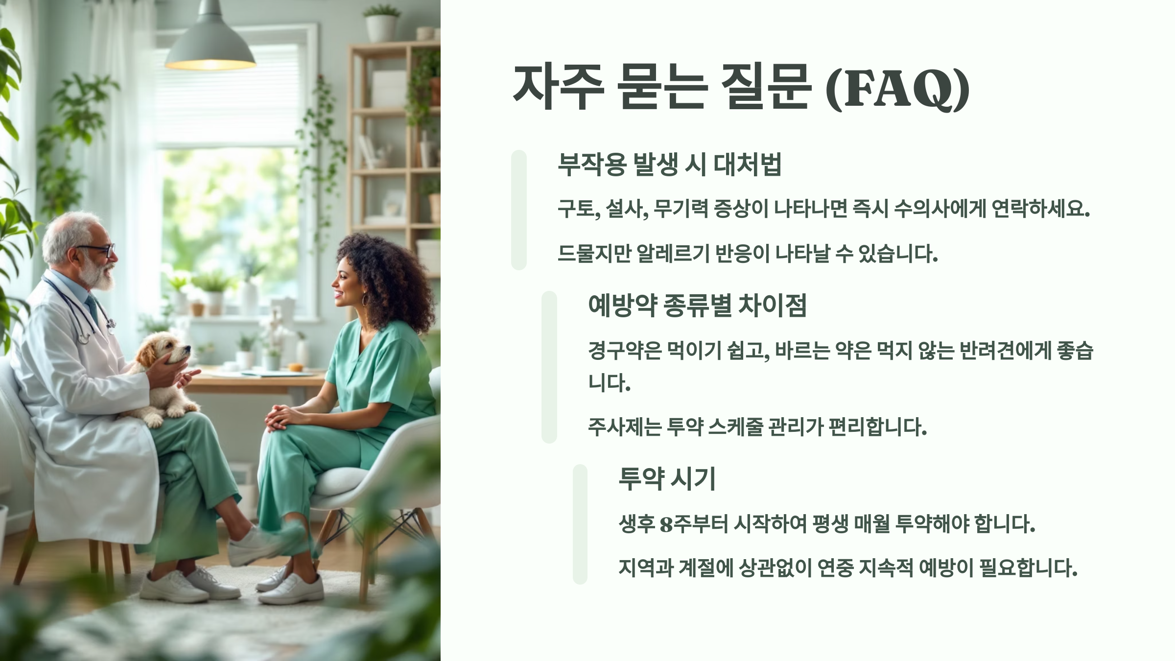 이제 진짜 실수 없이 완벽하게 예방할 수 있겠죠? 다음은 보호자들이 가장 자주 묻는 ❓ FAQ를 소개할게요. 8가지 핵심 질문과 답변으로 심장사상충 예방약에 대한 궁금증을 풀어드릴게요!