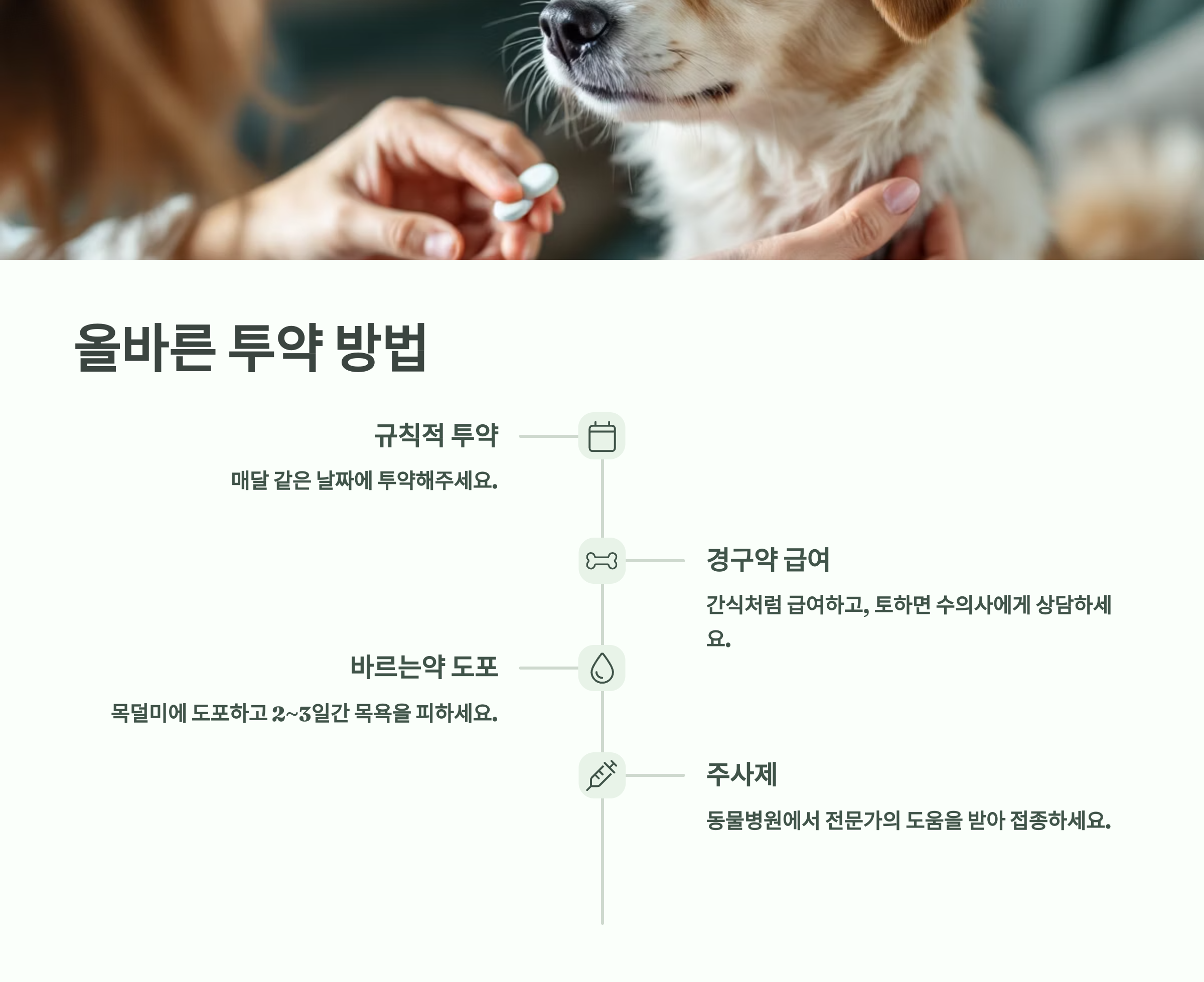 이제 다음 섹션에서 🐾 올바른 투약 방법에 대해 안내해드릴게요! 제품만 잘 골라도 투약이 잘못되면 효과를 못 볼 수 있거든요!