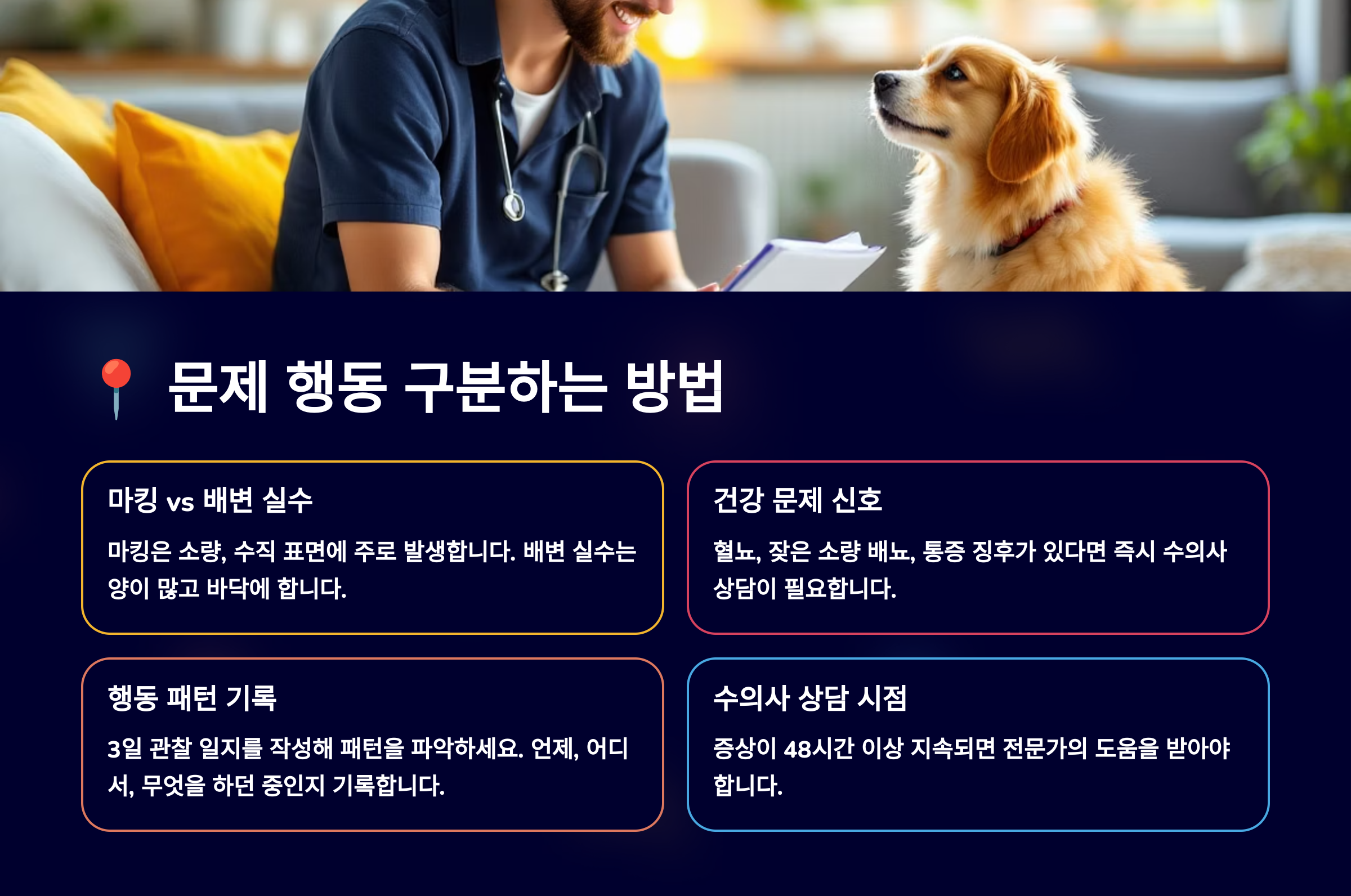 사랑하는 반려동물이 자꾸 배변 실수를 한다면 그저 혼내기보다는 원인을 정확히 파악하고, 환경을 바꾸는 노력이 먼저예요. 실수에는 반드시 이유가 있고, 그걸 이해해주는 게 진짜 보호자의 역할이죠. 💩💛