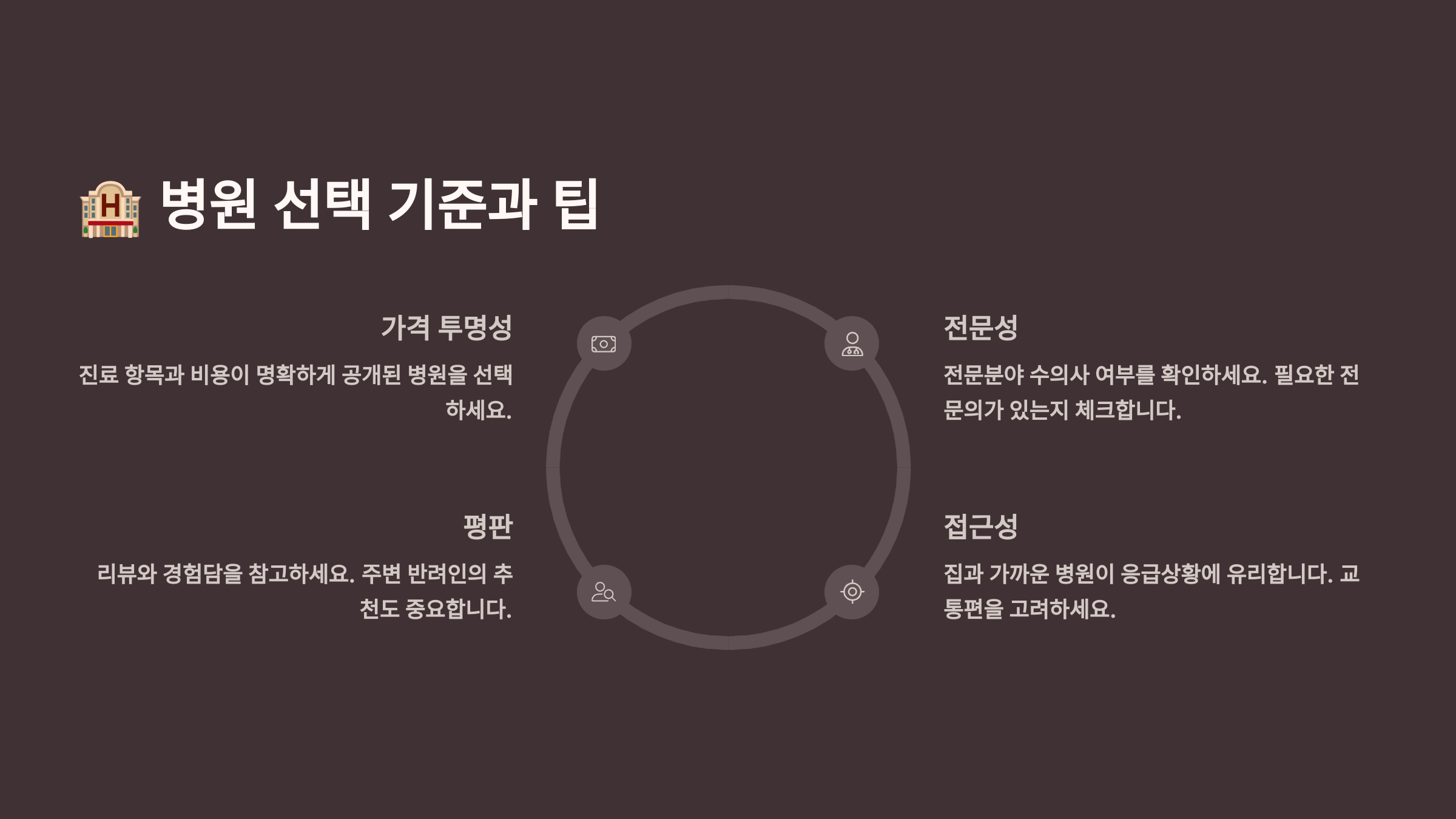 병원의 위치와 접근성도 실용적인 고려사항이에요. 정기 검진이나 만성질환 관리를 위해서는 집에서 가까운 곳이 좋지만, 전문적인 치료나 수술이 필요할 때는 조금 멀더라도 실력 있는 병원을 선택하는 것이 나을 수 있어요. 또한 24시간 응급 진료가 가능한지, 주차 시설은 어떤지, 대중교통으로 접근하기 편한지 등도 고려해볼 점들이에요. 특히 시니어 반려동물이나 거동이 불편한 반려동물의 경우 접근성이 더욱 중요해집니다.