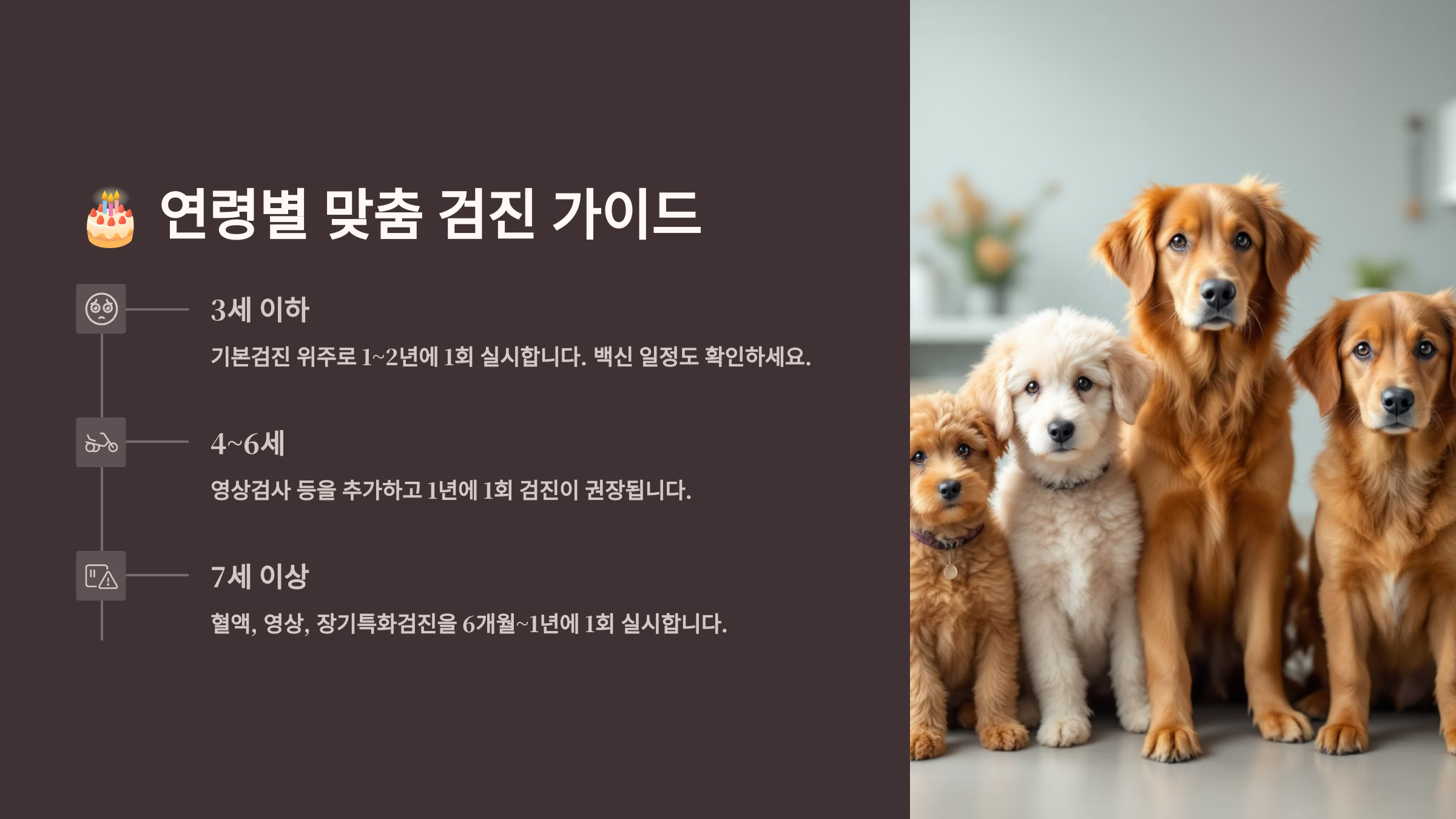 | 시니어 (7-10세) | 6개월 1회 | 정밀 종합검진 | 30-50만원 |