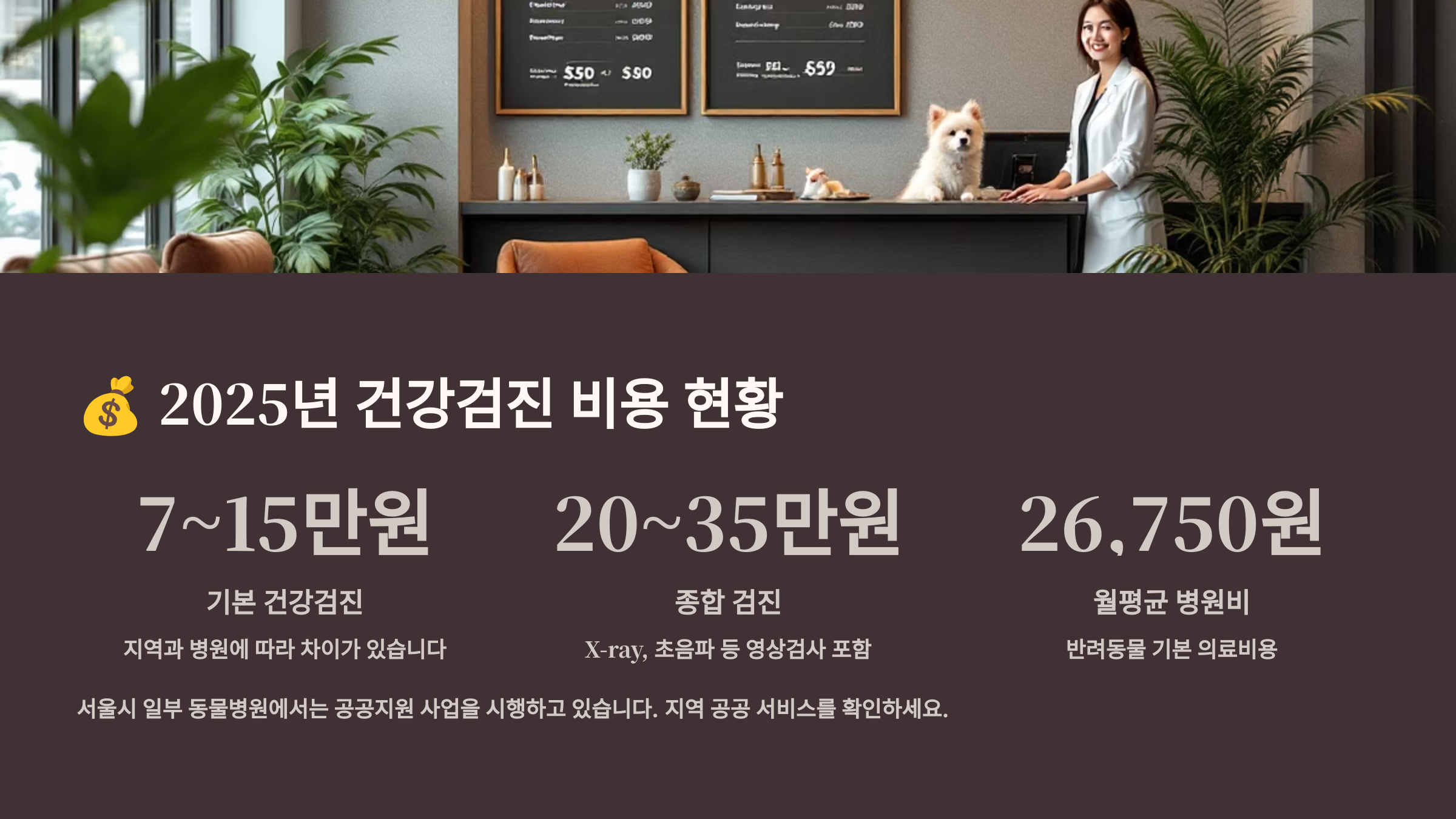 2025년 현재 반려동물 건강검진 비용은 지역과 병원 규모에 따라 상당한 차이를 보이고 있어요. 서울 강남이나 분당 같은 고급 주거지역의 대형 동물병원에서는 기본 건강검진 패키지가 20-30만원 정도이고, 정밀 검진은 50-80만원까지 올라가기도 해요. 반면 지방의 중소 동물병원에서는 기본 검진을 10-15만원 정도에 받을 수 있어서 지역별 가격 편차가 꽤 크답니다. 이런 가격 차이는 임대료, 장비 도입비용, 인건비 등의 차이에서 비롯되는 것이므로 비싸다고 무조건 좋은 것은 아니에요.