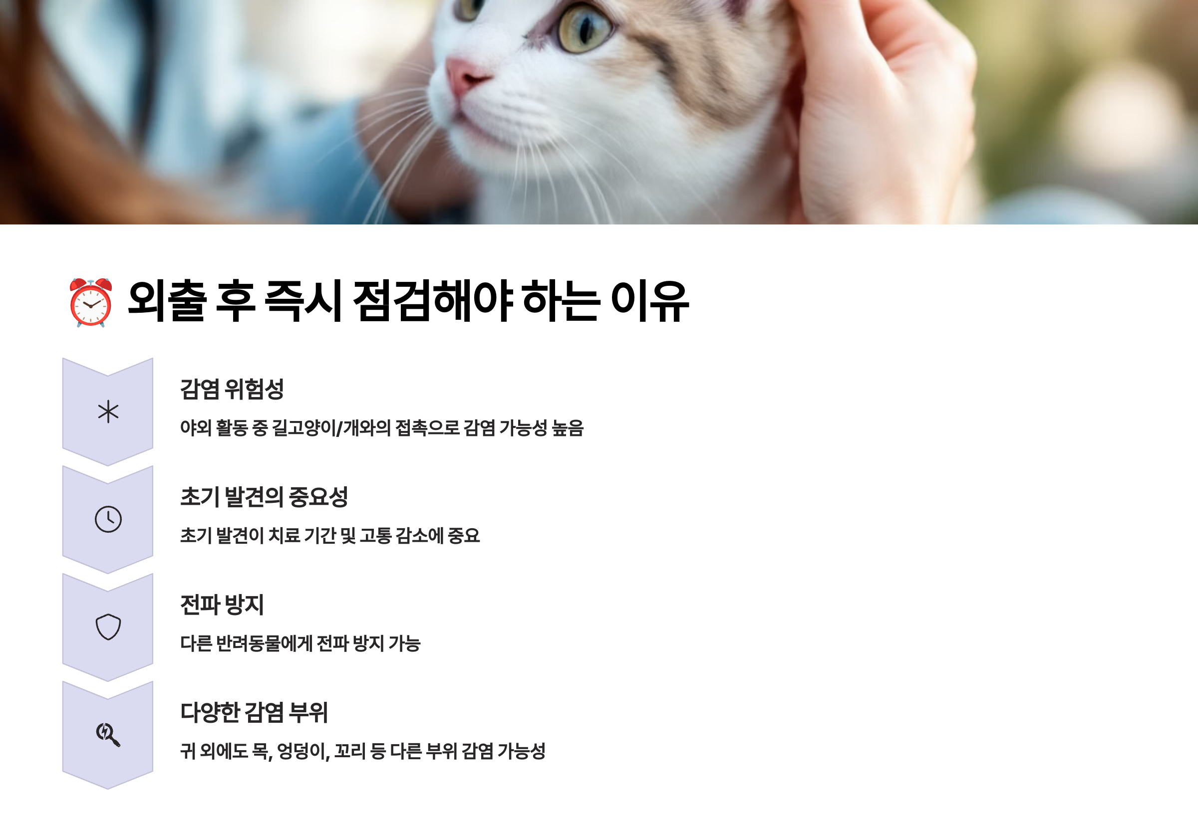 철저한 예방 관리가 최고의 치료법이에요. 조금의 수고로 우리 반려동물을 귀진드기로부터 안전하게 지킬 수 있답니다! 🛡️