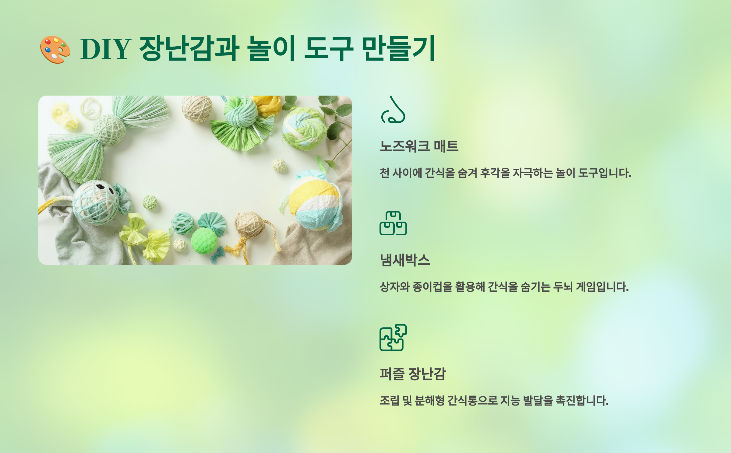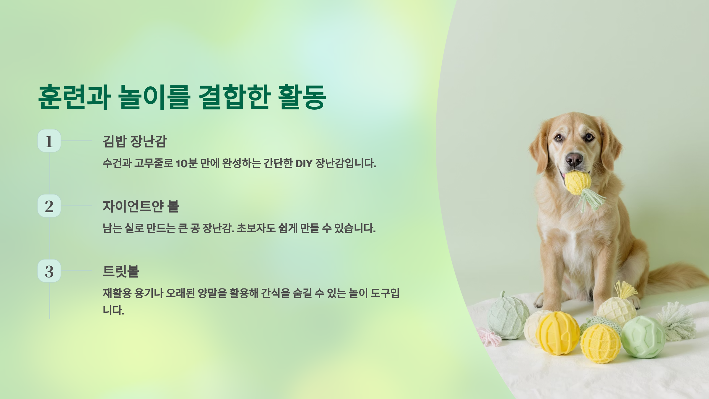 집에 있는 재료들로 강아지 장난감을 만들면 경제적이면서도 창의적인 놀이가 가능해요. DIY 장난감은 강아지의 취향에 맞게 커스터마이징할 수 있고, 만드는 과정 자체도 즐거운 활동이 될 수 있어요. 무엇보다 재활용품을 활용하면 환경 보호에도 도움이 된답니다.