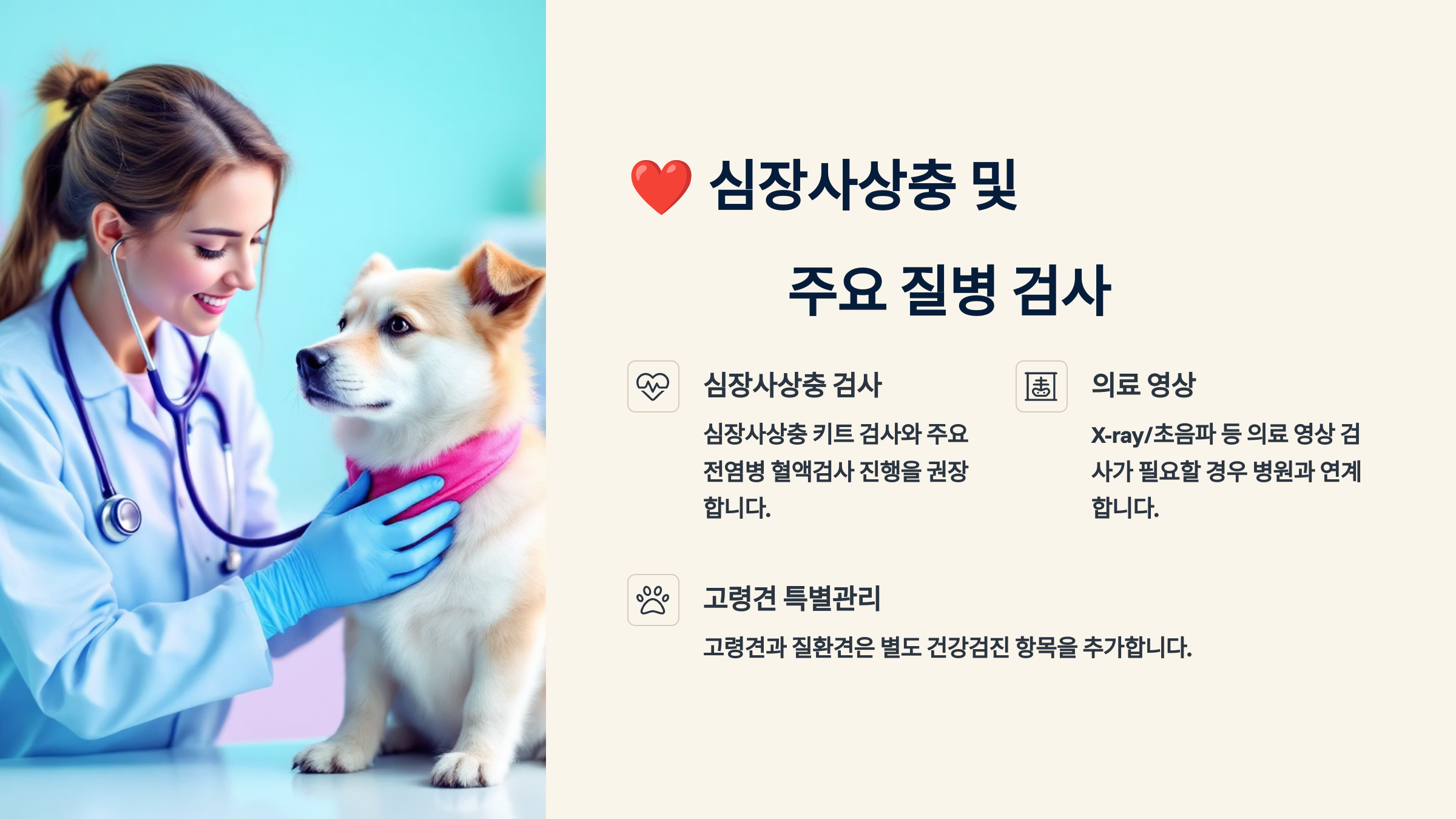 사전 건강검진을 통해 우리 아이의 안전을 미리 확보하는 것이 최고의 예방법이에요! 🐾