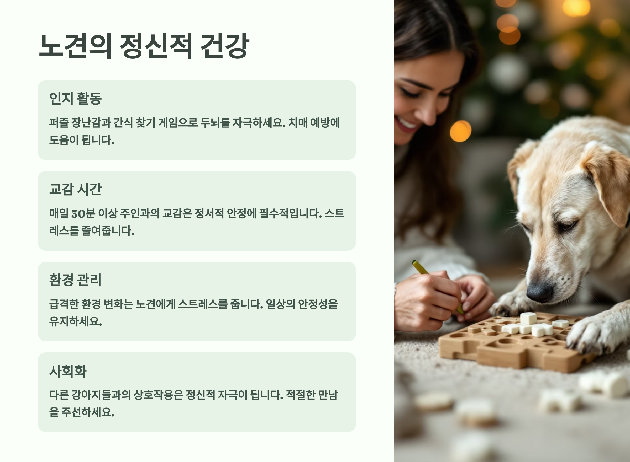 노견의 건강 관리에서 중요한 부분 중 하나는 바로 정신적 건강이에요. 🐶🧠