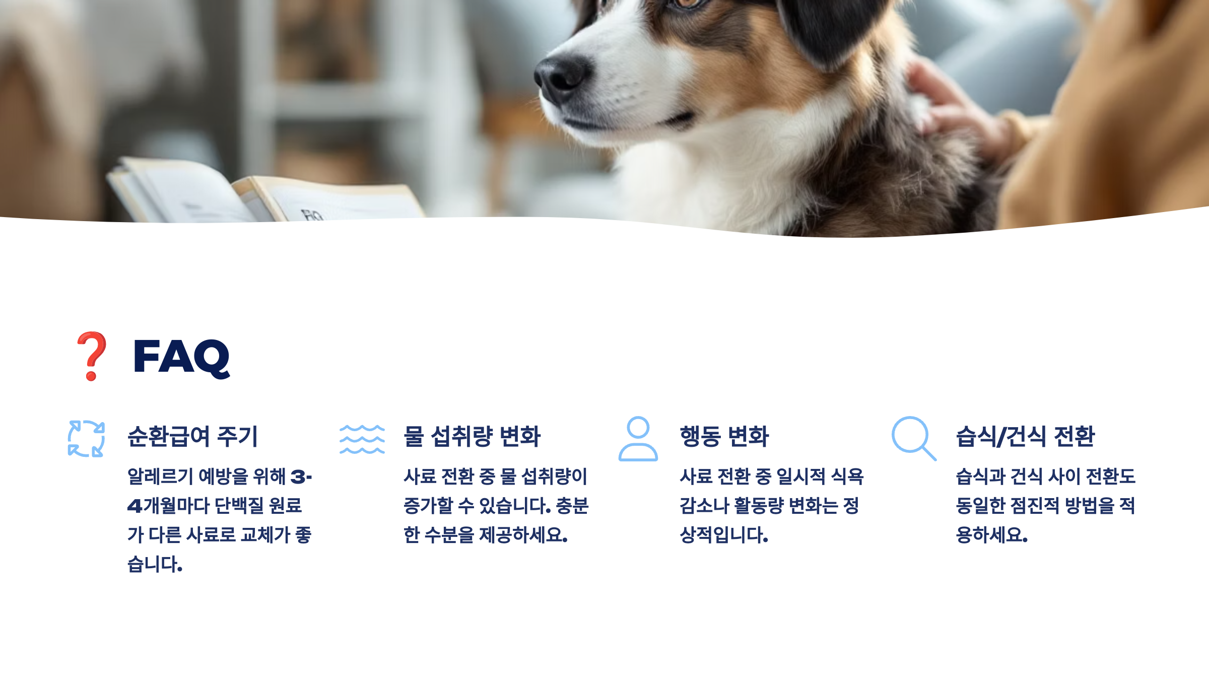 Q8. 사료 전환 후 털이 푸석해졌어요. 원인일 수 있나요?