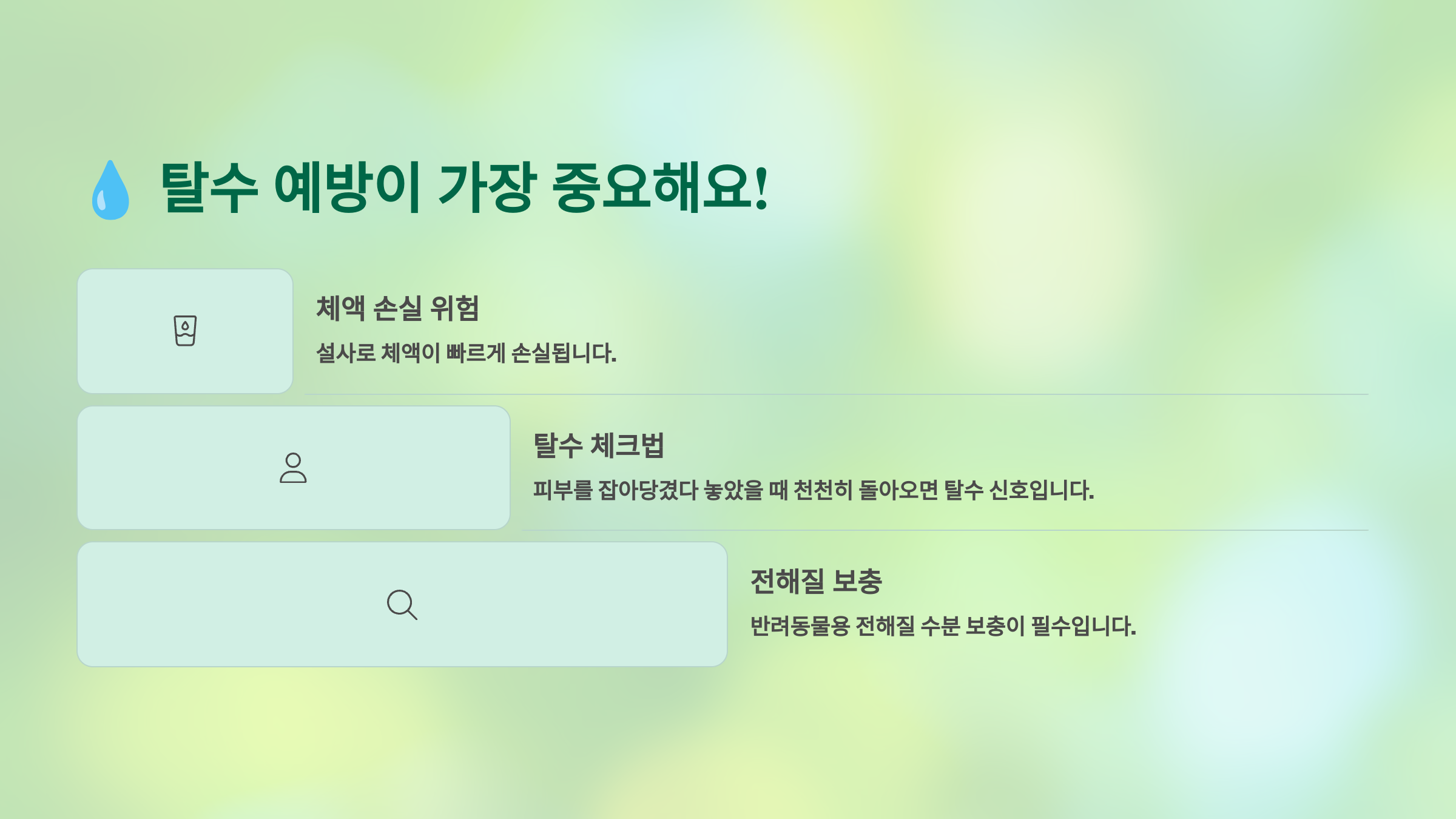- 💧 탈수 예방이 가장 중요해요!