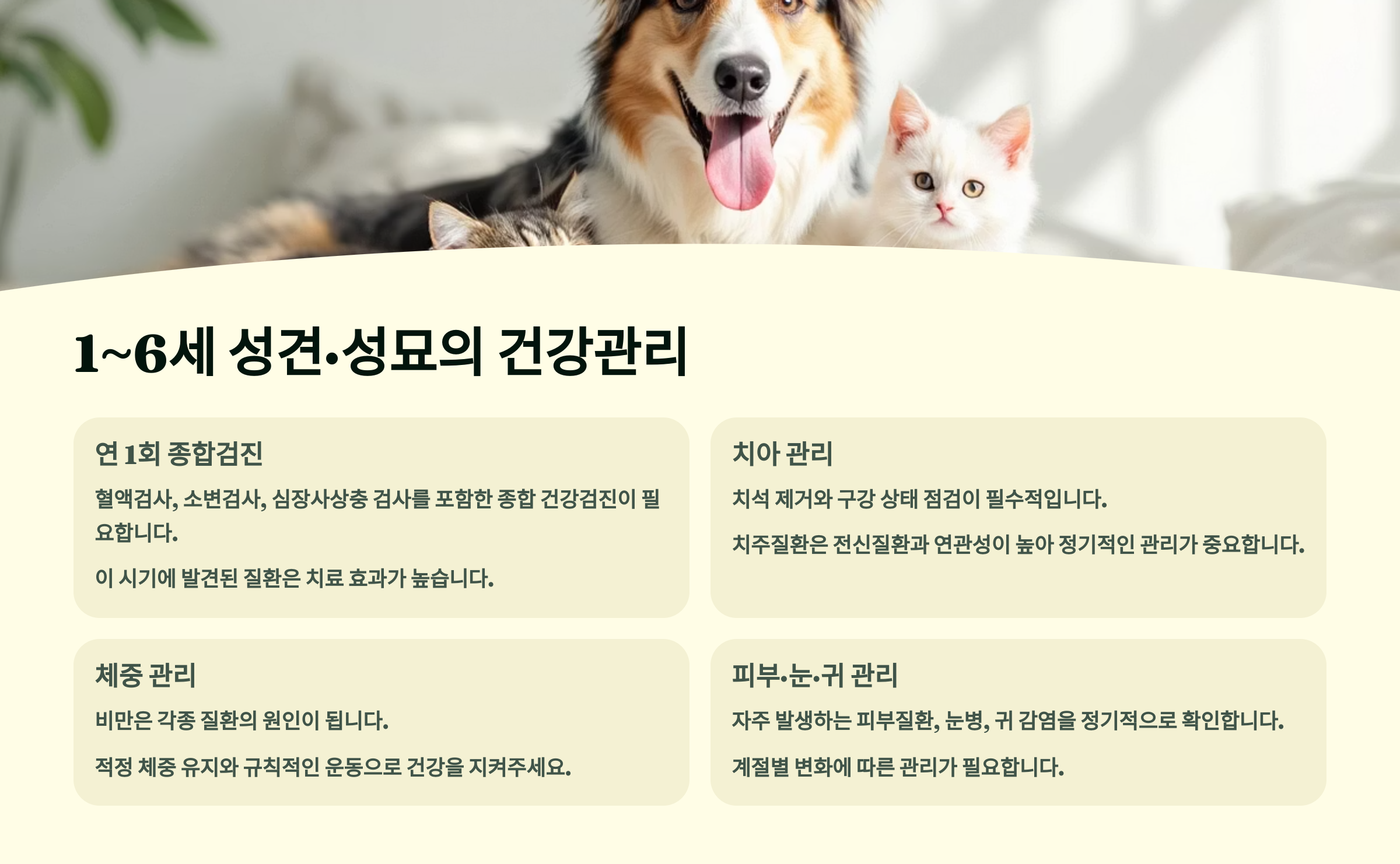 🌿 3. 1~6세 성견·성묘의 건강관리